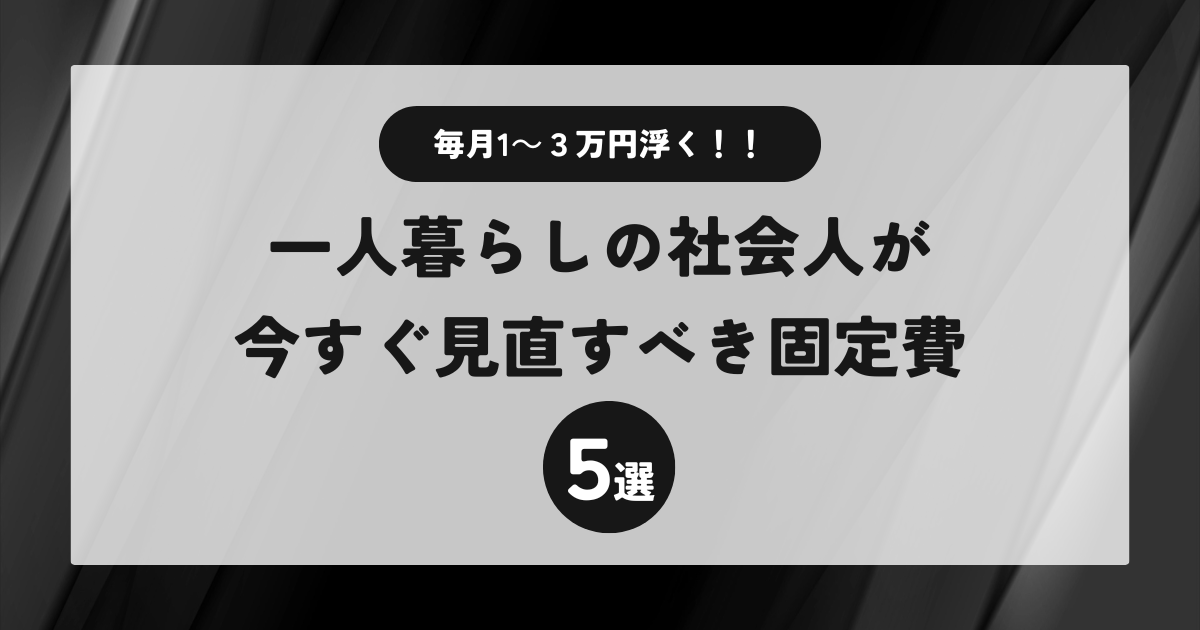 【月1〜3万円浮く】一人暮らしの社会人が今すぐ見直すべき固定費5選